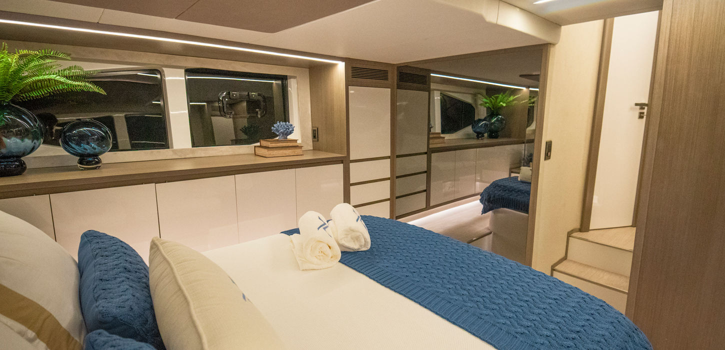 É a primeira embarcação de grande porte desenvolvida especialmente para o clima tropical. Ela tem um amplo lounge de proa com acessibilidade total de popa a proa. Cabine com 2 suítes e 1 sala que pode receber o terceiro quarto. A suíte master na meia nau com visão panorâmica em todos os ângulos e acabamento refinado, entregando o máximo de conforto, sofisticação e luxo aos passageiros. A versão HT deixa o iate com linhas mais esportivas e um visual jovial